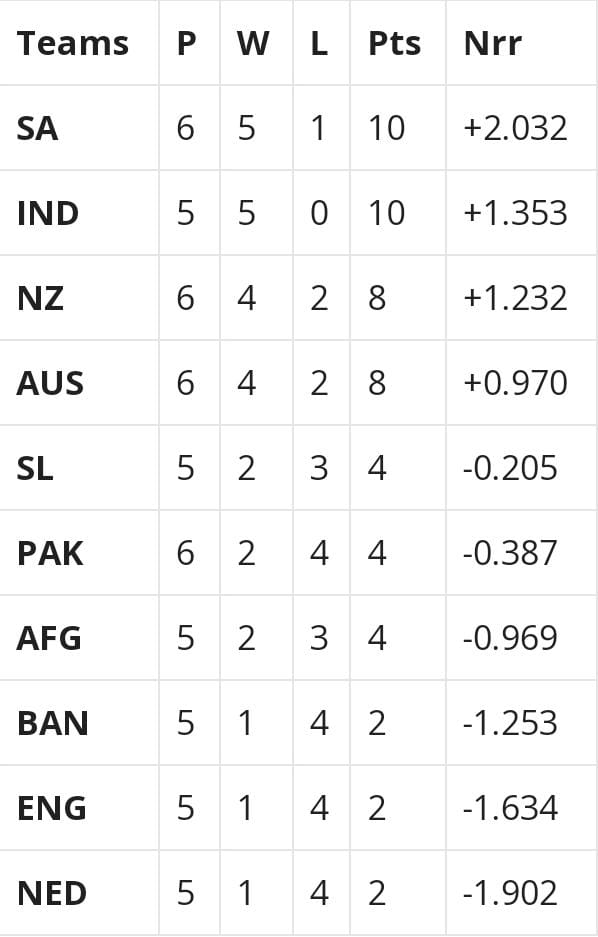 পাঁচবারের বিশ্বকাপ চ্যাম্পিয়ন অস্ট্রেলিয়া প্রথম দুটি ম্যাচে হারের পর ঘুরে দাঁড়িয়েছে এবং পরপর চারটি ম্যাচ জিতে নিয়েছে। ট্র্যাভিস হেড অজিদের হয়ে প্রথম বিশ্বকাপে খেলতে নামলেন আজ এবং প্রথমদিনেই অবিশ্বাস্য ৬৭ বলে ১০৯ রানের ইনিংস খেলে গেলেন। ডেভিড ওয়ার্নার (৬৫ বলে ৮১) এবং ট্র্যাভিস ওপেনিং জুটিতে ১৭৫ রান বানালেন। গ্লেন ম্যাক্সওয়েল (৪১), জস ইংলিস (৩৮) এবং প্যাট কামিন্স যিনি মাত্র ১৪ বলে ৩৭ রান খেলে দলকে জয়ের কাছাকাছি পৌঁছে দেন।
