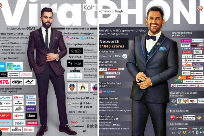 একটি প্রতিবেদনে দাবি করা হয়েছে যে কোহলির সম্পত্তির পরিমাণ ধোনির থেকে কিছুটা বেশি। এই তথ্য অনুসারে, প্রাক্তন ভারতীয় খেলোয়াড়ের মোট সম্পত্তি ভারতীয় মুদ্রায় ১০৪০ কোটি, যা কোহলির চেয়ে ১০ কোটি কম। একটি প্রতিবেদনে এই তথ্য প্রকাশ করা হয়েছে।