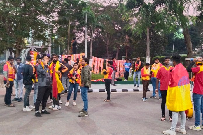 ম্যাচ শুরুর কয়েকঘণ্টা আগে থেকেই কলিঙ্গ স্টেডিয়ামের তিন নম্বর গেটের বাইরে ভিড় জমিয়েছিলেন সমর্থকরা। এক কথায় আস্তানা গেড়েছিলেন সেখানেই। গত কয়েকটি ম্যাচে এই দৃশ্যই দেখা গিয়েছে বার বার। অফিস কামাই করে, হাতখরচার টাকা জমিয়ে, কোনও রকমে ছুটে আসা নিজের দলকে সমর্থন করতে। তাই হোটেল খরচ বাঁচাতে এই ব্যবস্থা। স্টেডিয়াামের বাইরের একফালি সবুজ গালিচায় কেউ কেউ তো সপরিবারে, স্ত্রী থেকে ছোট্ট বাচ্চাকে নিয়ে হাজির ।প্যাকেট করে আনা দুপুরের খাওয়া সারলেন সেখানেই। কেউ আবার দলের জার্সি, পতাকা নিয়ে স্টেডিয়ামের বাইরে দোকানও খুলে ফেললেন।