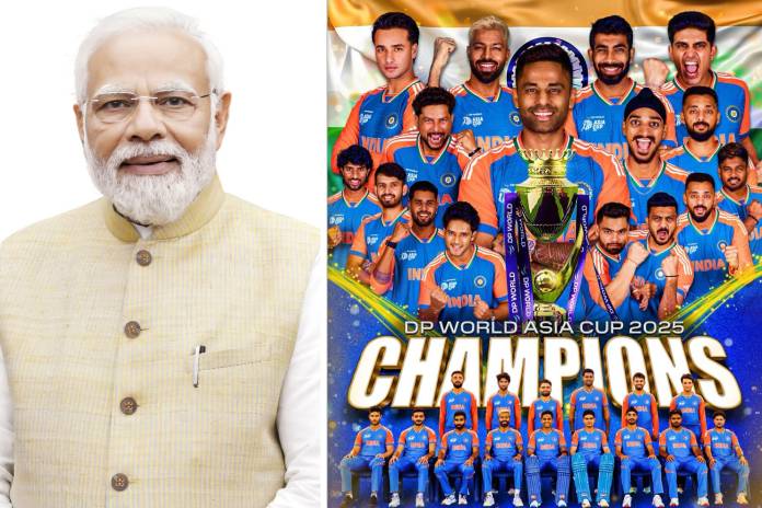 রবিবার এক রোমাঞ্চকর ফাইনালে চিরপ্রতিদ্বন্দ্বী পাকিস্তানকে পাঁচ উইকেটে হারিয়ে ভারতের নবম এশিয়া কাপ শিরোপা জয়ের পর, প্রধানমন্ত্রী নরেন্দ্র মোদী অপারেশন সিন্দুরের সঙ্গে ভারতের এই জয়ের তুলনা করে পুরো দলকে শুভেচ্ছা জানিয়েছেন।